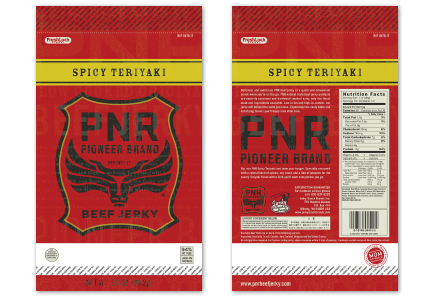 Jerky Snack Brands Package Design Numerous package sizes and products were created using this basic package design.